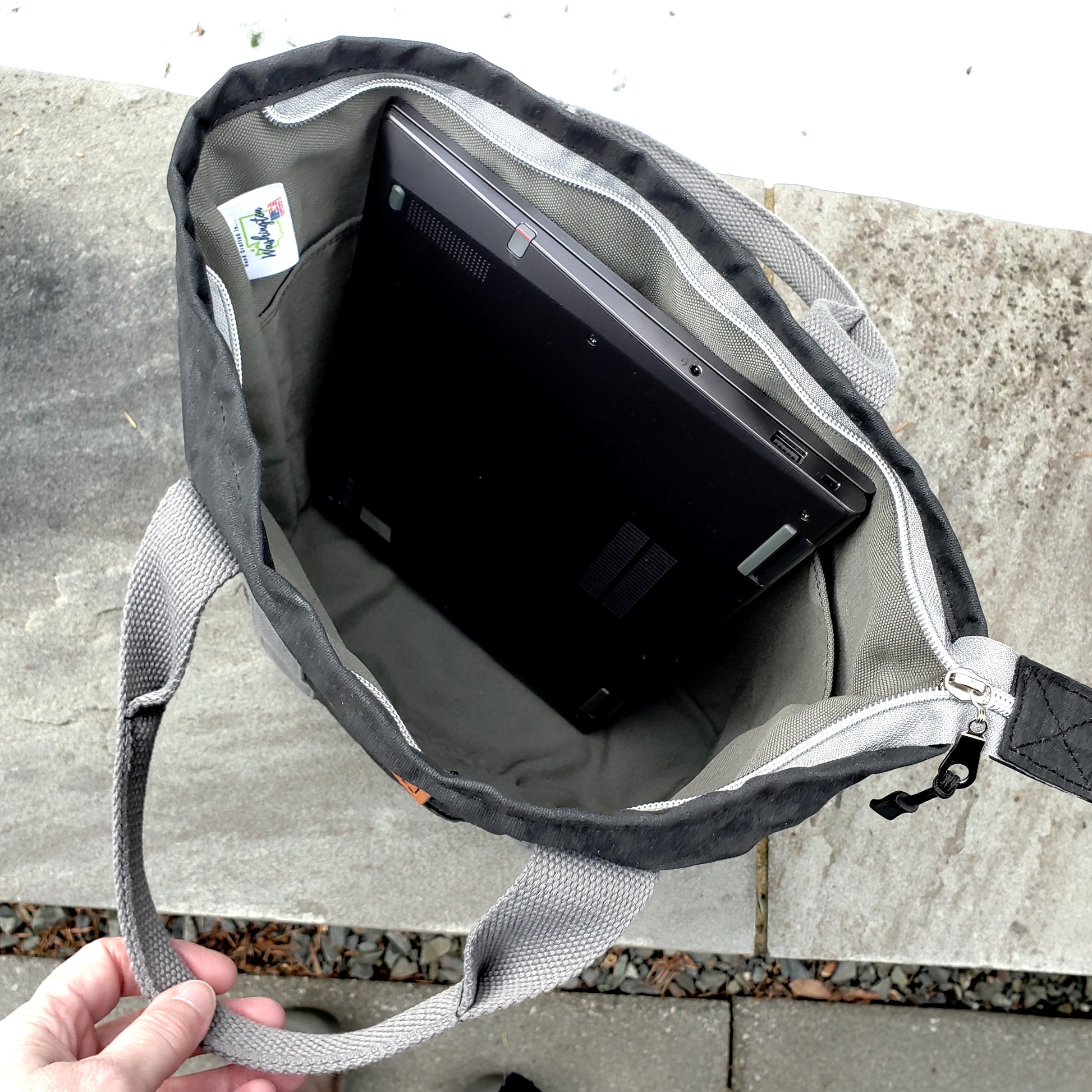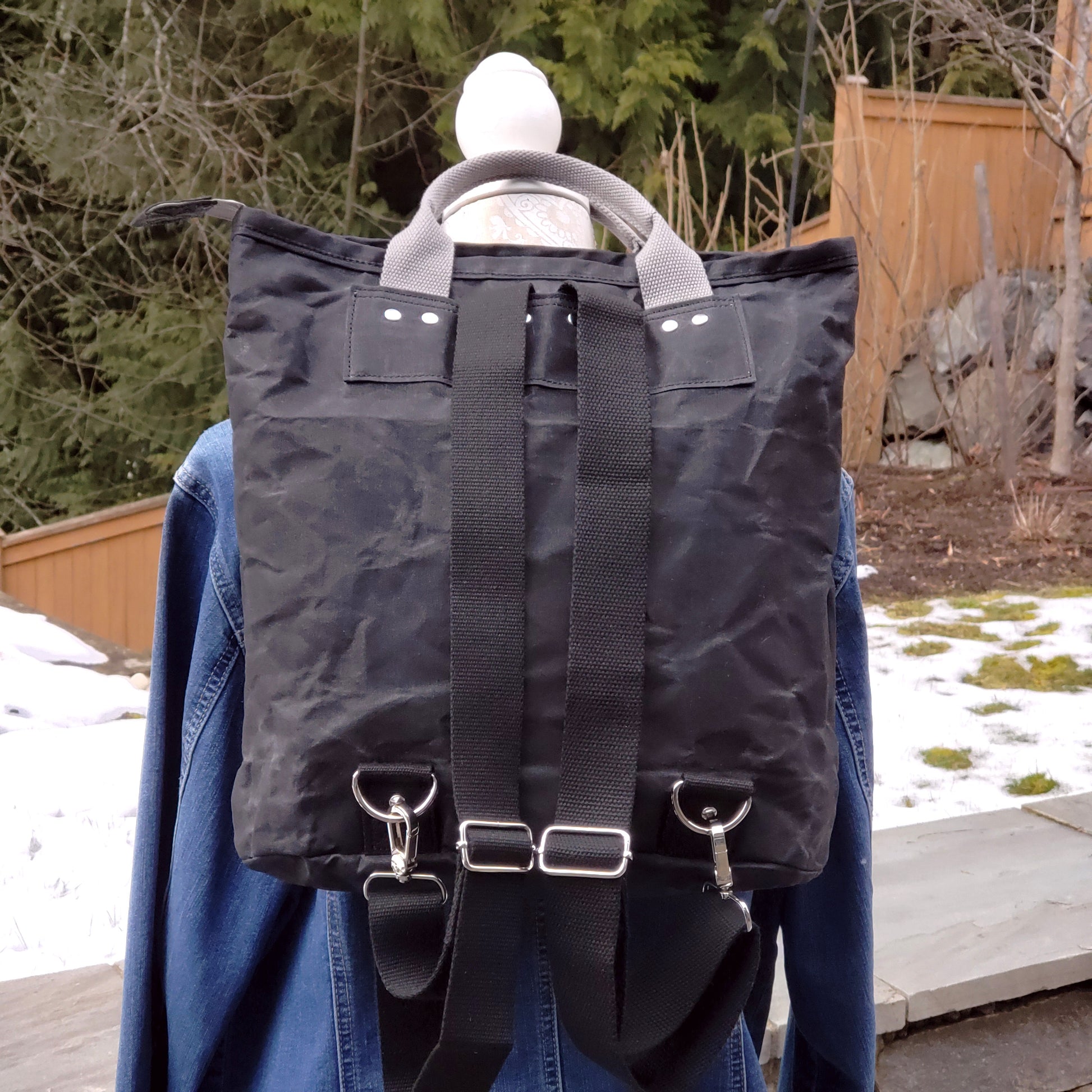 You'll love this zippered top backpack in a rugged waxed canvas for every day use. Exterior has a small slip pocket for easy access to smaller items and a flat oval base. The waterproof canvas interior has a divided slip pocket to keep things organized. The backpack has wide adjustable straps and top handles and fits tablets, small laptops and/or notebooks.
