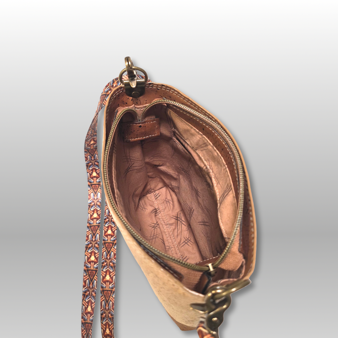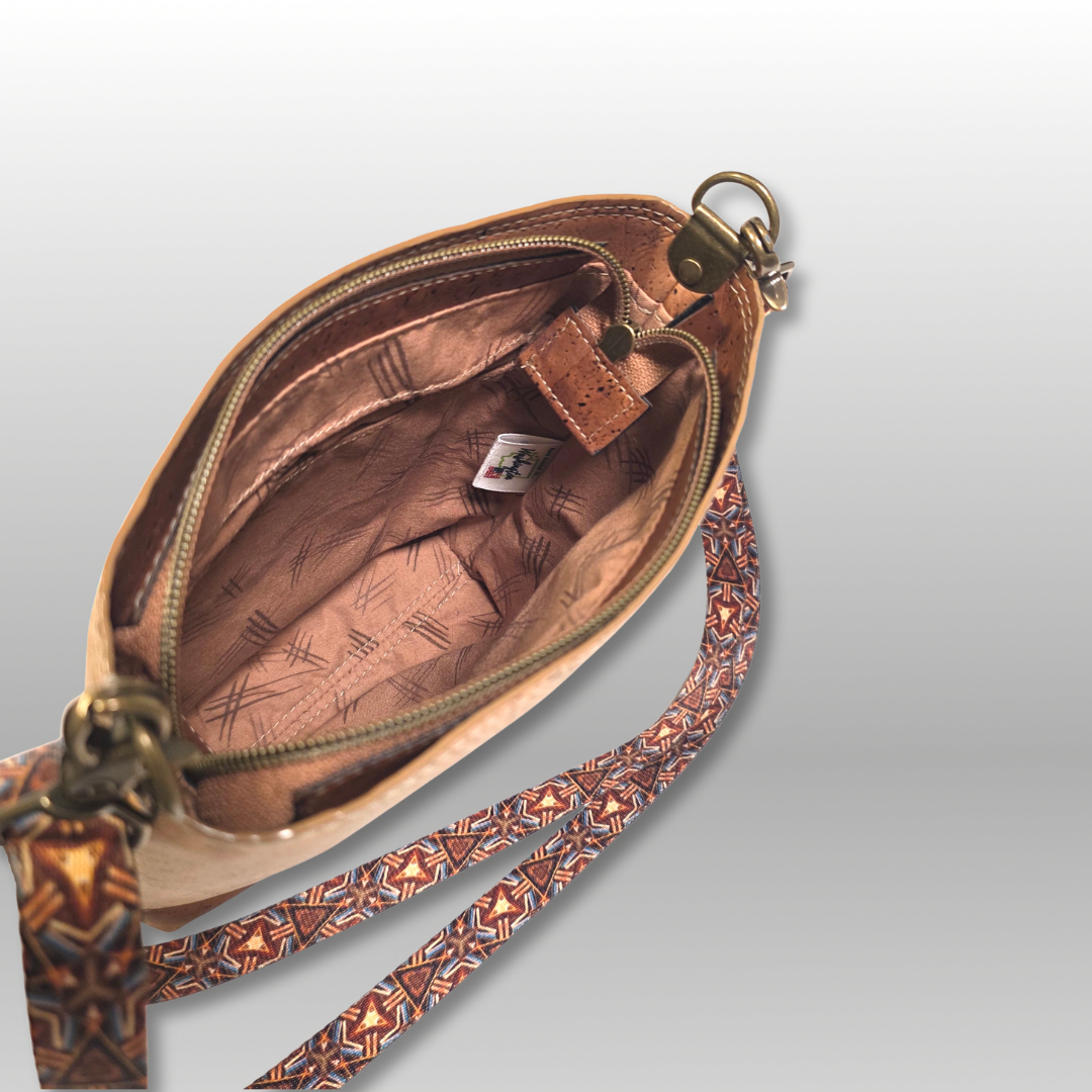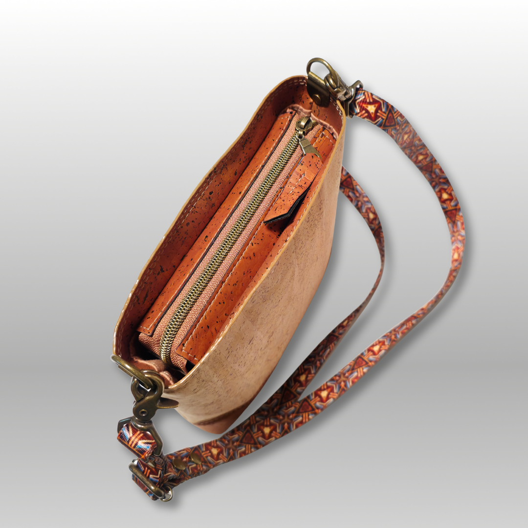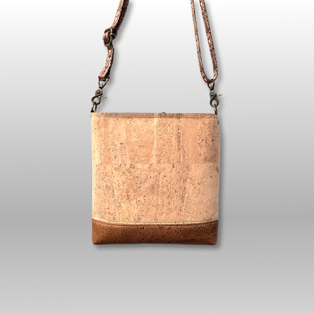 The Mini Box Tote offers a sophisticated blend of sustainability and style, crafted from renewable cork fabric that provides durability with an eco-conscious edge. Its medium-sized, structured design ensures ample space for daily essentials while maintaining a sleek silhouette. The contrasting recessed zipper adds a refined detail, enhancing both security and aesthetic appeal. Inside, the cotton lining features a convenient slip pocket to keep smaller items organized. Completing the design is a 3/4" adjustable crossbody strap made from printed webbing, allowing for comfortable, customizable wear. This tote is an ideal choice for those seeking a practical yet environmentally responsible accessory.