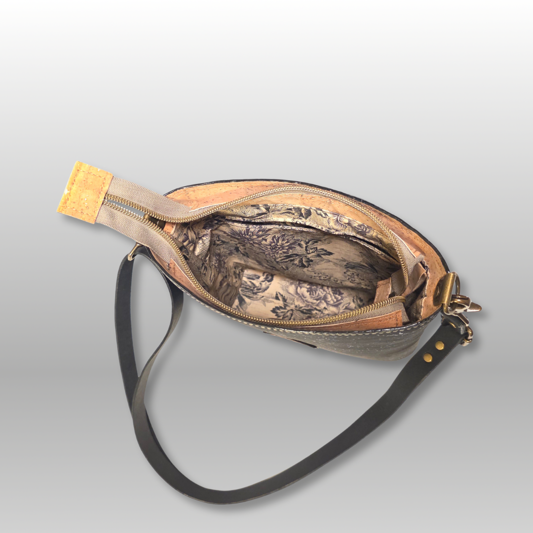 The Mini Box Tote offers a sophisticated blend of sustainability and style, crafted from renewable cork fabric that provides durability with an eco-conscious edge. Its medium-sized, structured design ensures ample space for daily essentials while maintaining a sleek silhouette. The contrasting recessed zipper adds a refined detail, enhancing both security and aesthetic appeal. Inside, the cotton lining features a convenient slip pocket to keep smaller items organized. Completing the design is a 3/4" leather adjustable crossbody strap, allowing for comfortable, customizable wear. This tote is an ideal choice for those seeking a practical yet environmentally responsible accessory.