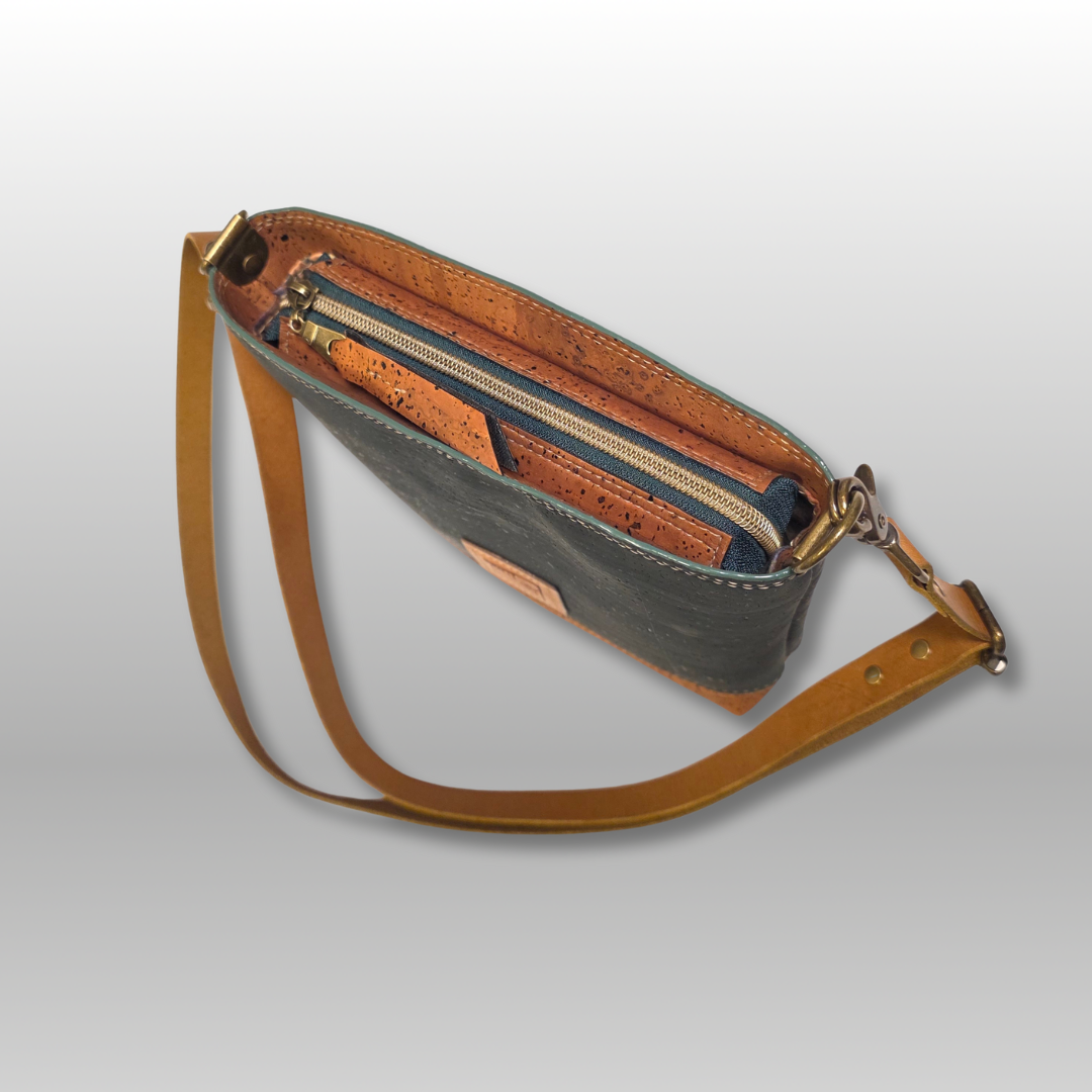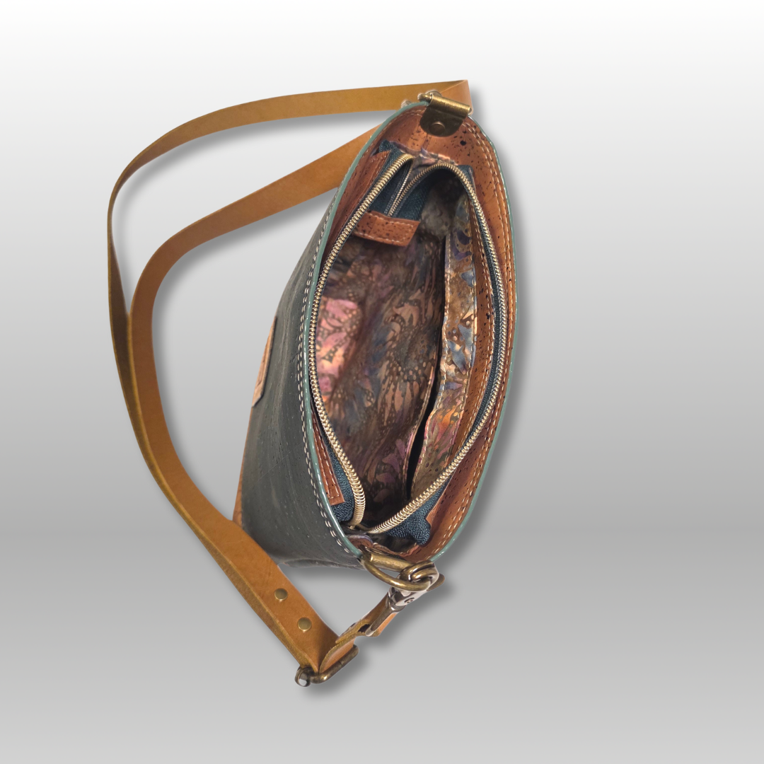 The Mini Box Tote offers a sophisticated blend of sustainability and style, crafted from renewable cork fabric that provides durability with an eco-conscious edge. Its medium-sized, structured design ensures ample space for daily essentials while maintaining a sleek silhouette. The contrasting recessed zipper adds a refined detail, enhancing both security and aesthetic appeal. Inside, the batik cotton lining features a convenient slip pocket to keep smaller items organized. Completing the design is a 3/4" leather adjustable crossbody strap, allowing for comfortable, customizable wear. This tote is an ideal choice for those seeking a practical yet environmentally responsible accessory.