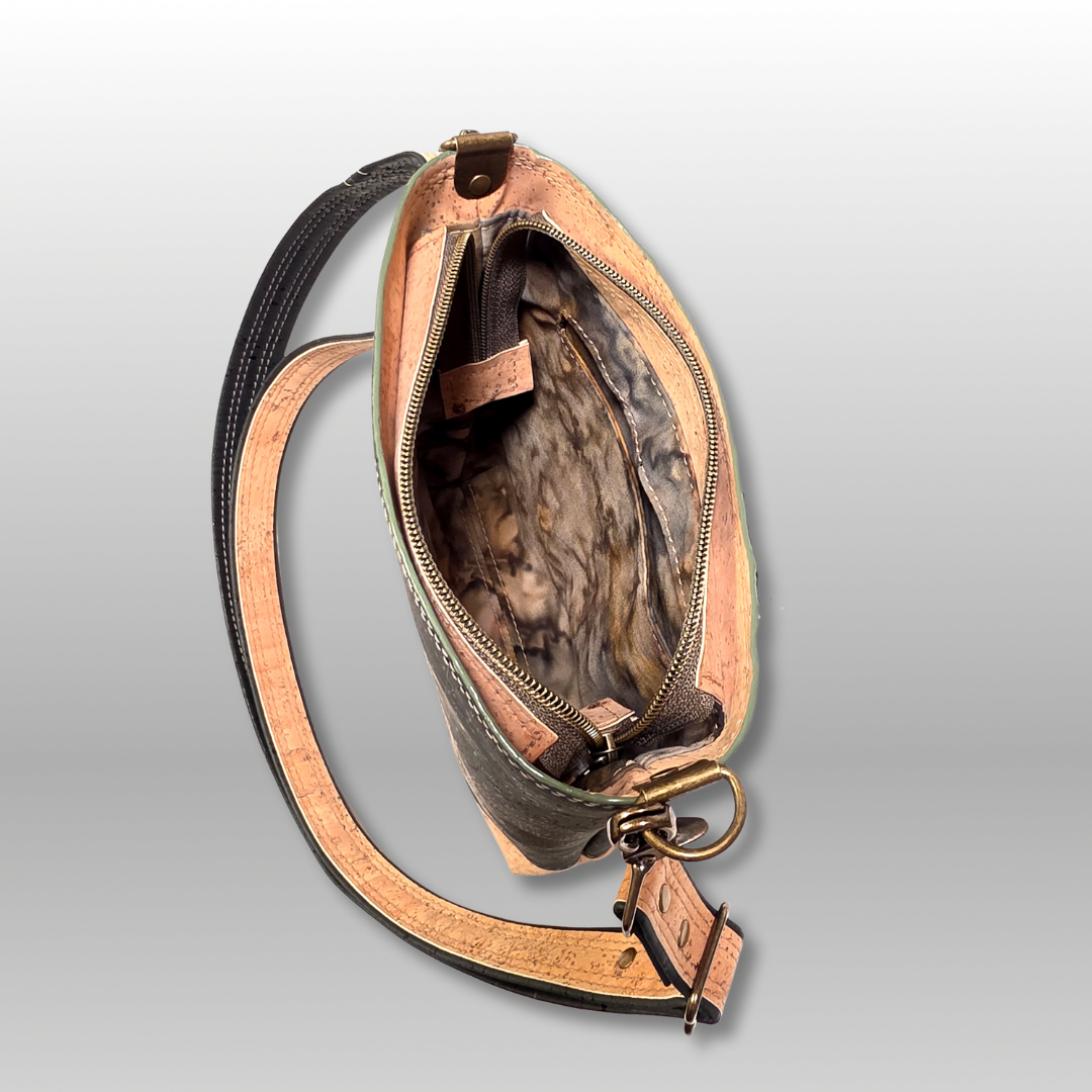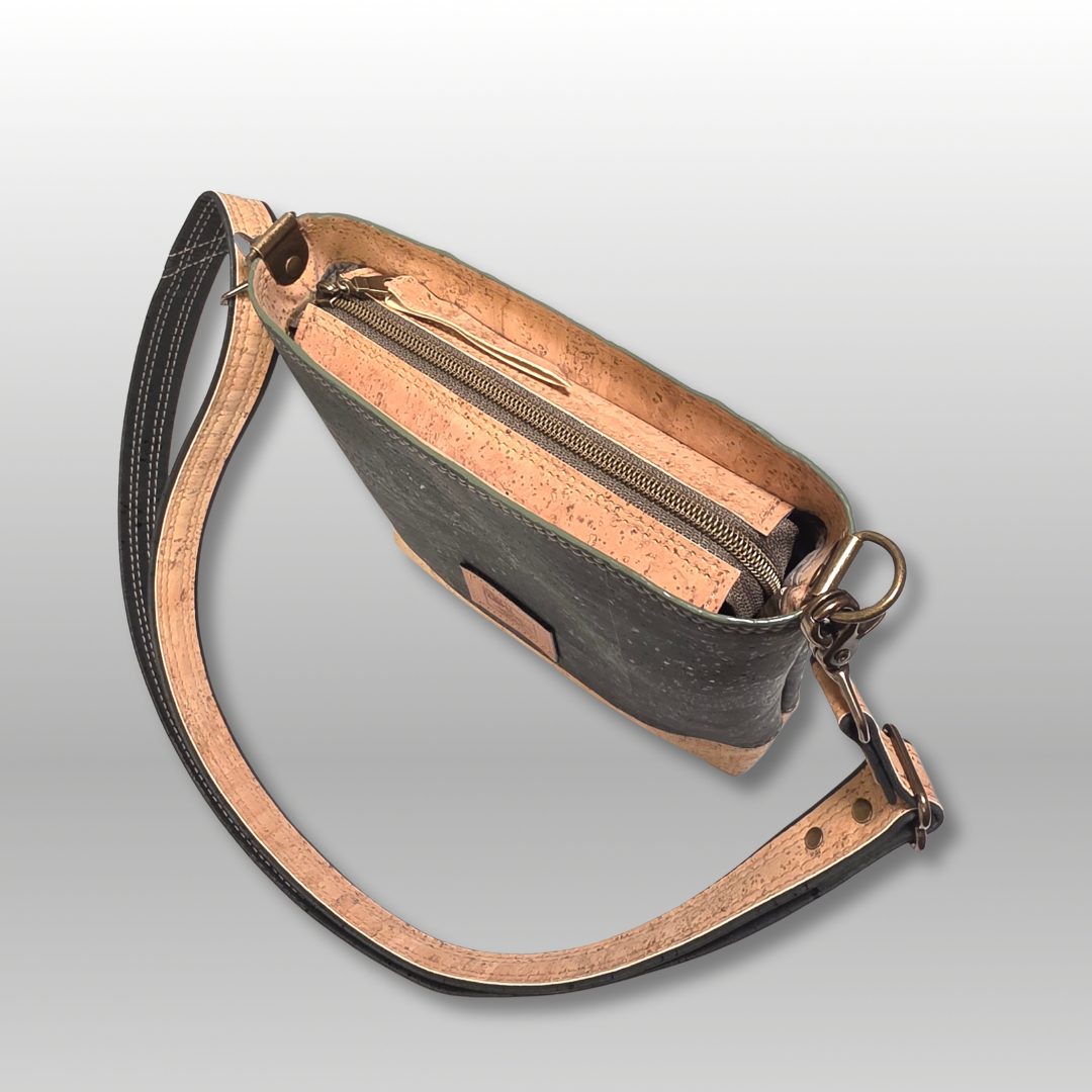 The Mini Box Tote offers a sophisticated blend of sustainability and style, crafted from renewable cork fabric that provides durability with an eco-conscious edge. Its medium-sized, structured design ensures ample space for daily essentials while maintaining a sleek silhouette. The contrasting recessed zipper adds a refined detail, enhancing both security and aesthetic appeal. Inside, the batik cotton lining features a convenient slip pocket to keep smaller items organized. Completing the design is a 1" adjustable crossbody strap in cork with contrasting accent, allowing for comfortable, customizable wear. This tote is an ideal choice for those seeking a practical yet environmentally responsible accessory.