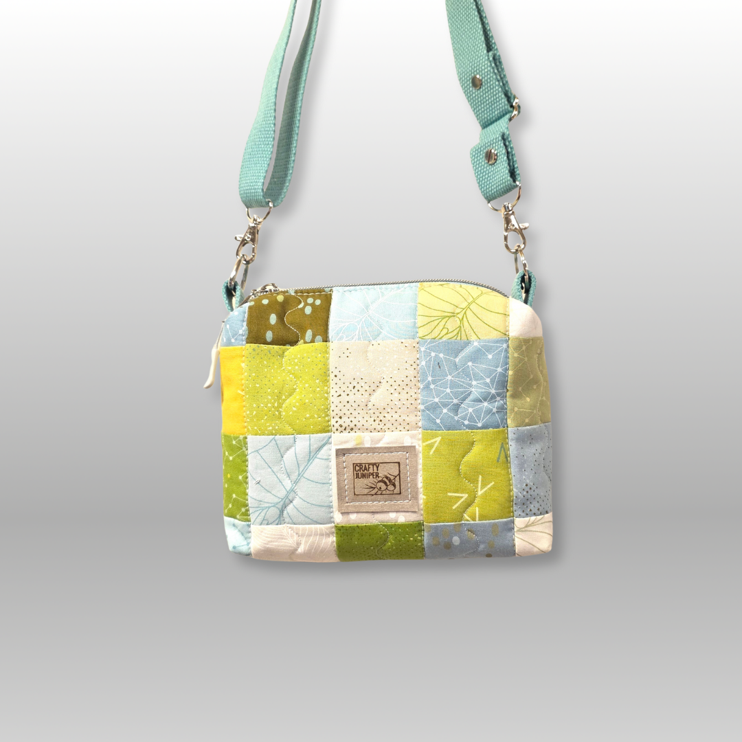 Is it a cosmetic bag or a crossbody handbag? The choice is yours. Mini charm squares of cotton fabric align in this simple quilting inspired pouch with zippered top. Fill with your everyday carry basics or remove the adjustable webbing strap and pack with your overnight essentials. Take your packables from boring to charming with this cute bag.