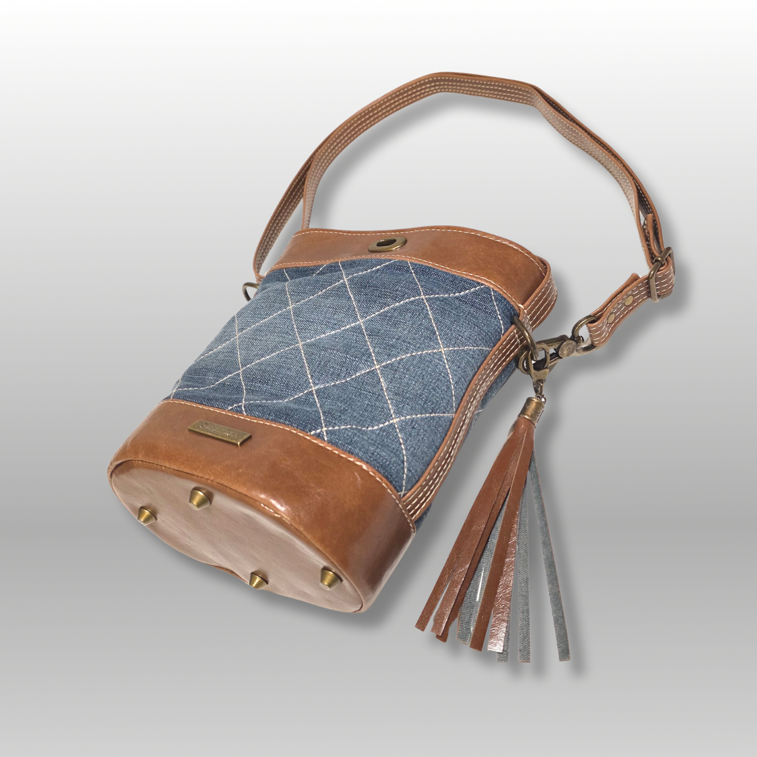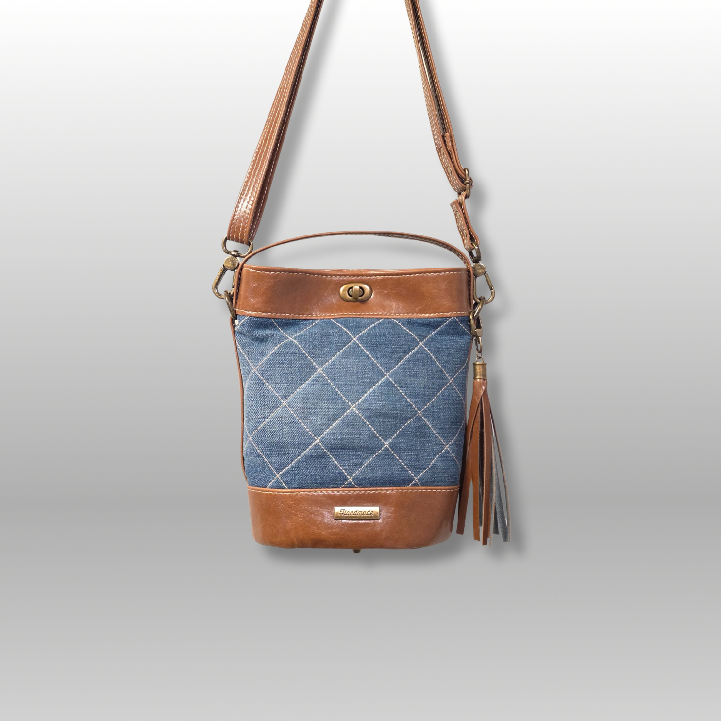 Sabrina is a charming and chic mini faux leather quilted bucket bag with contrasting accents, sturdy handle, removable crossbody strap and a turn lock closure. Interior is a cotton. This design was inspired by the effortless elegance captured by Audrey Hepburn in the movie Sabrina.